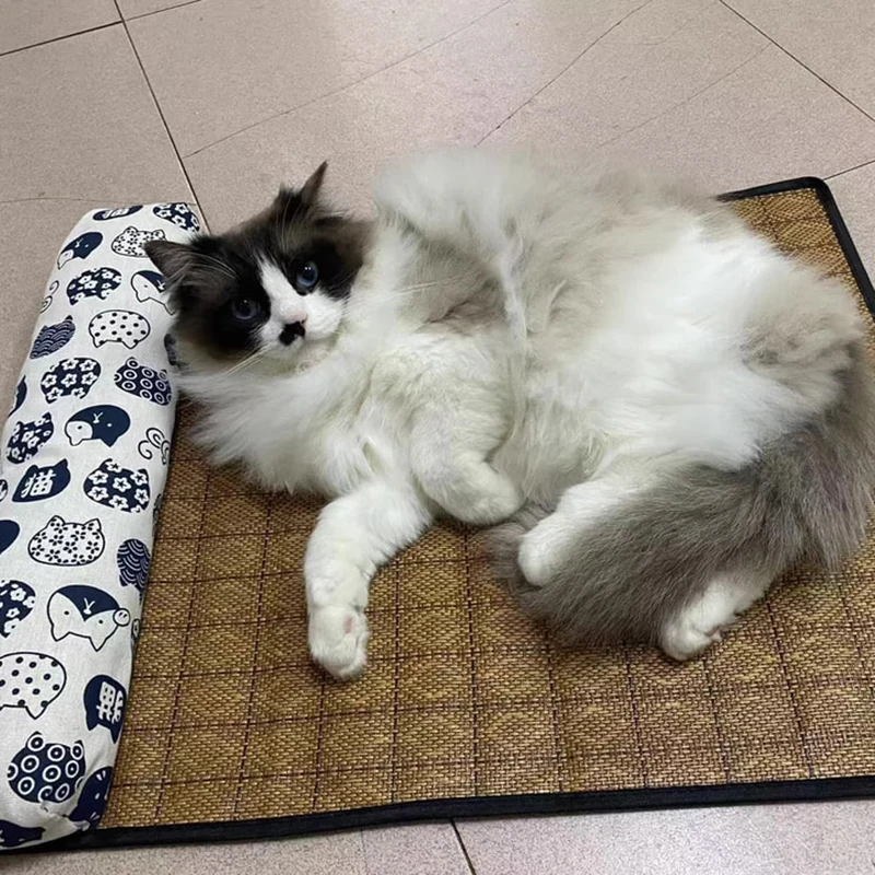 Cat Natural Cooling Mat Summer Pet Self Cooling Pad Cat Bed Mat For Dogs Indoor Rattan Weave Mat Sleeping Cat Bed